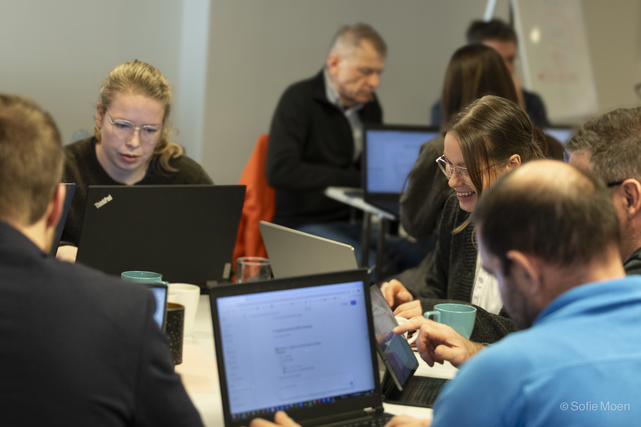 I workshopen jobba deltakarane praktisk med eigne problemstillingar og fekk rettleiing undervegs. Målet var at alle skulle sitje igjen med konkrete idear og verktøy dei kan ta i bruk i eigen arbeidssituasjon - noko som også vart tydeleg gjennom engasjementet i rommet.